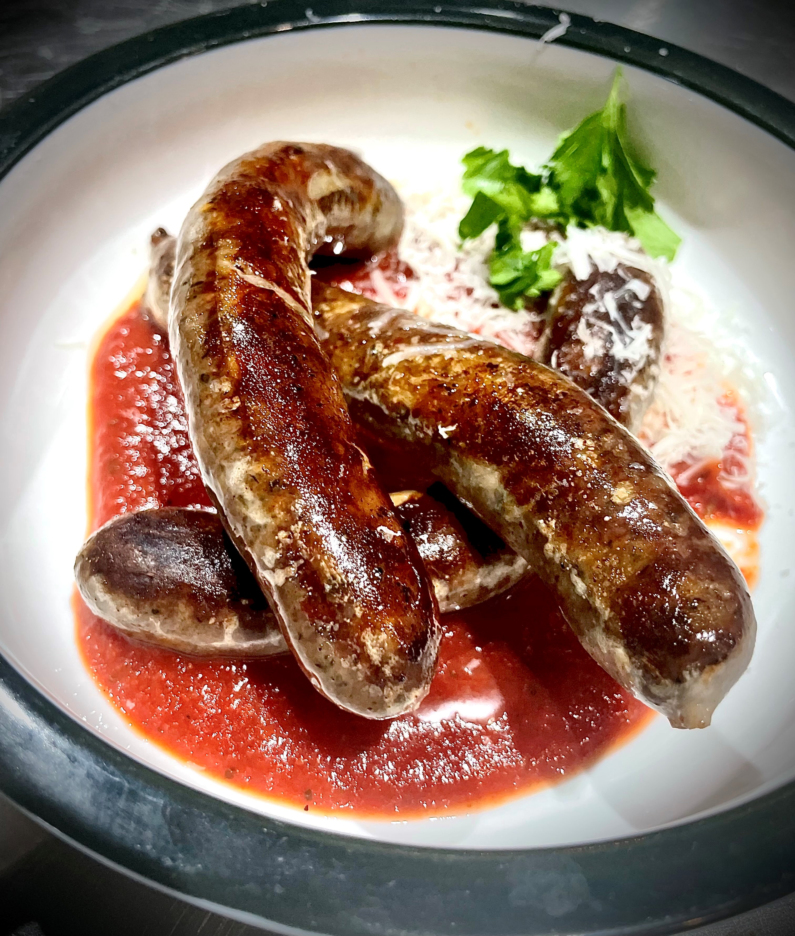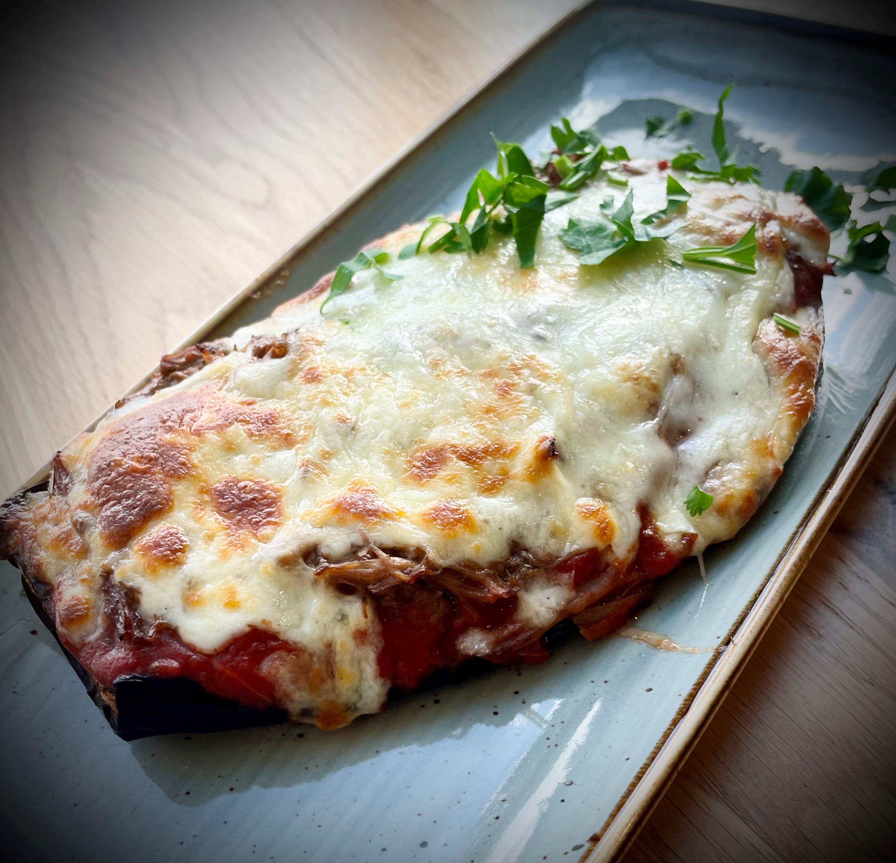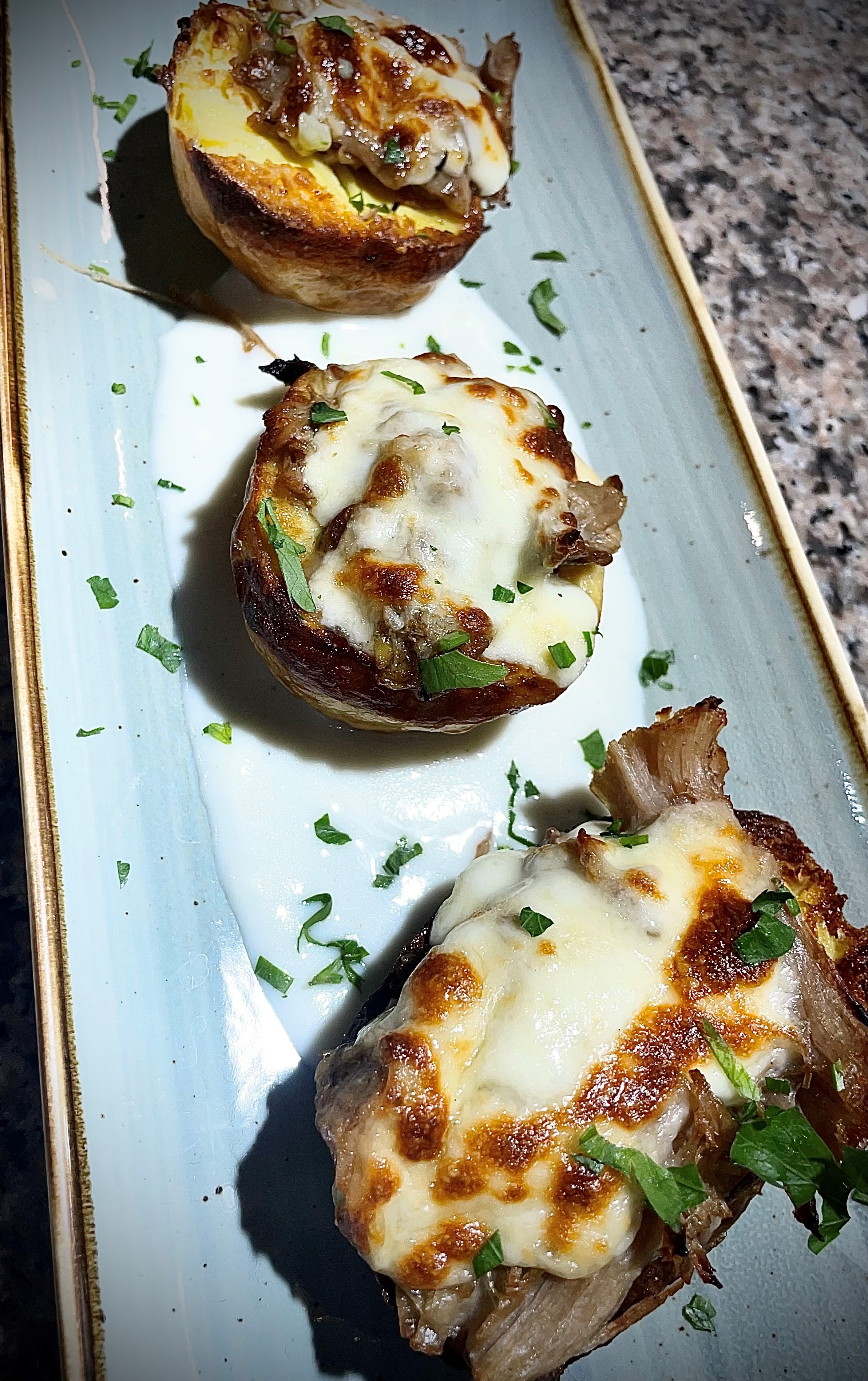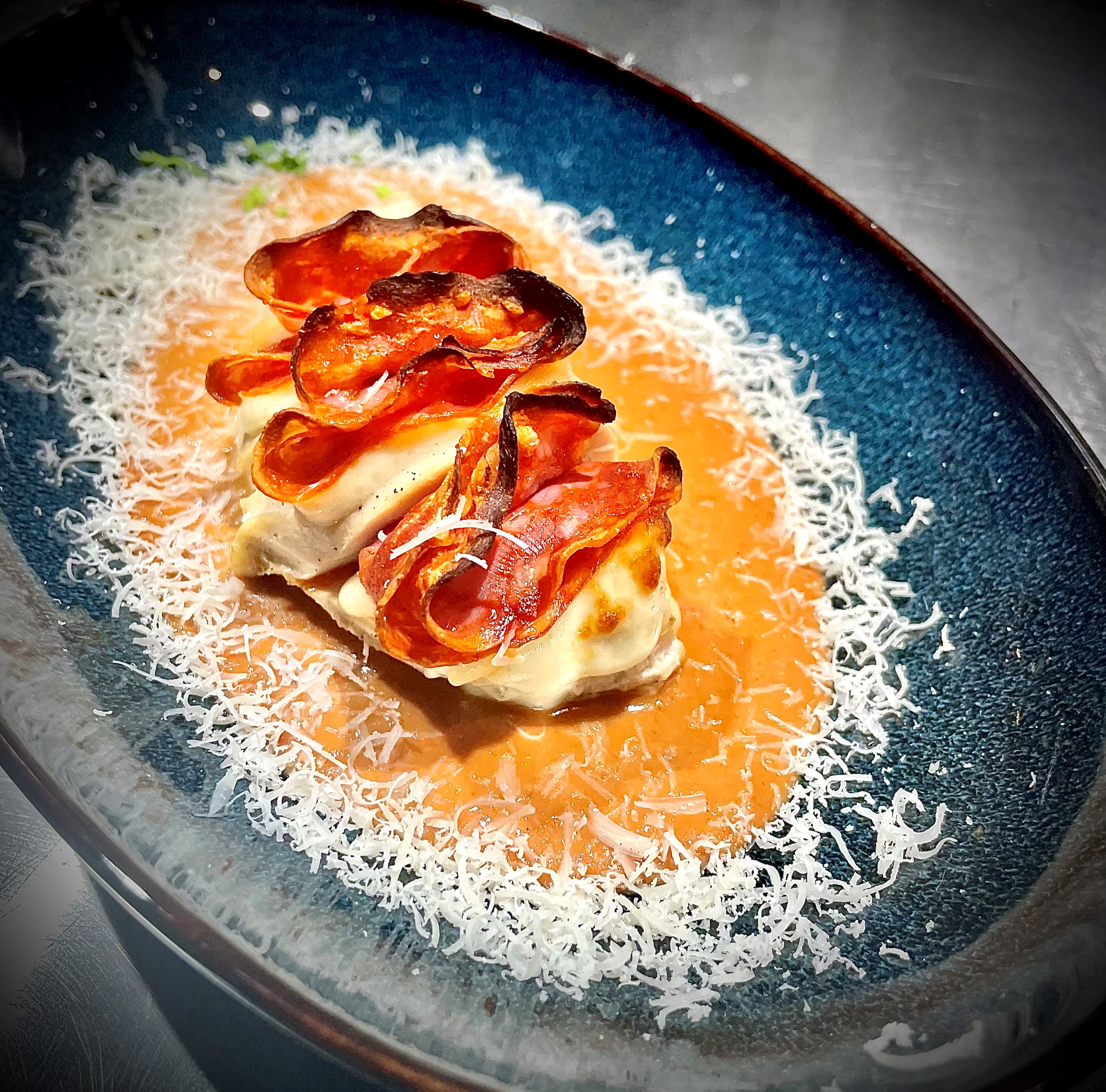 Италианска паста, бавно печено телешко, кралска печурка, олио от бял трюфел, сметана, пармезан